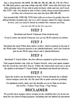 Here are stickers you can print off using this Brother sticker printer. If you see one(s) you like and want the .lbx file, just reach out to me with the exact name of the sticker and I’ll send it to you. You can also just make the text larger and hand it out as a flyer, but you want stickers so you reach anyone passing around that area.